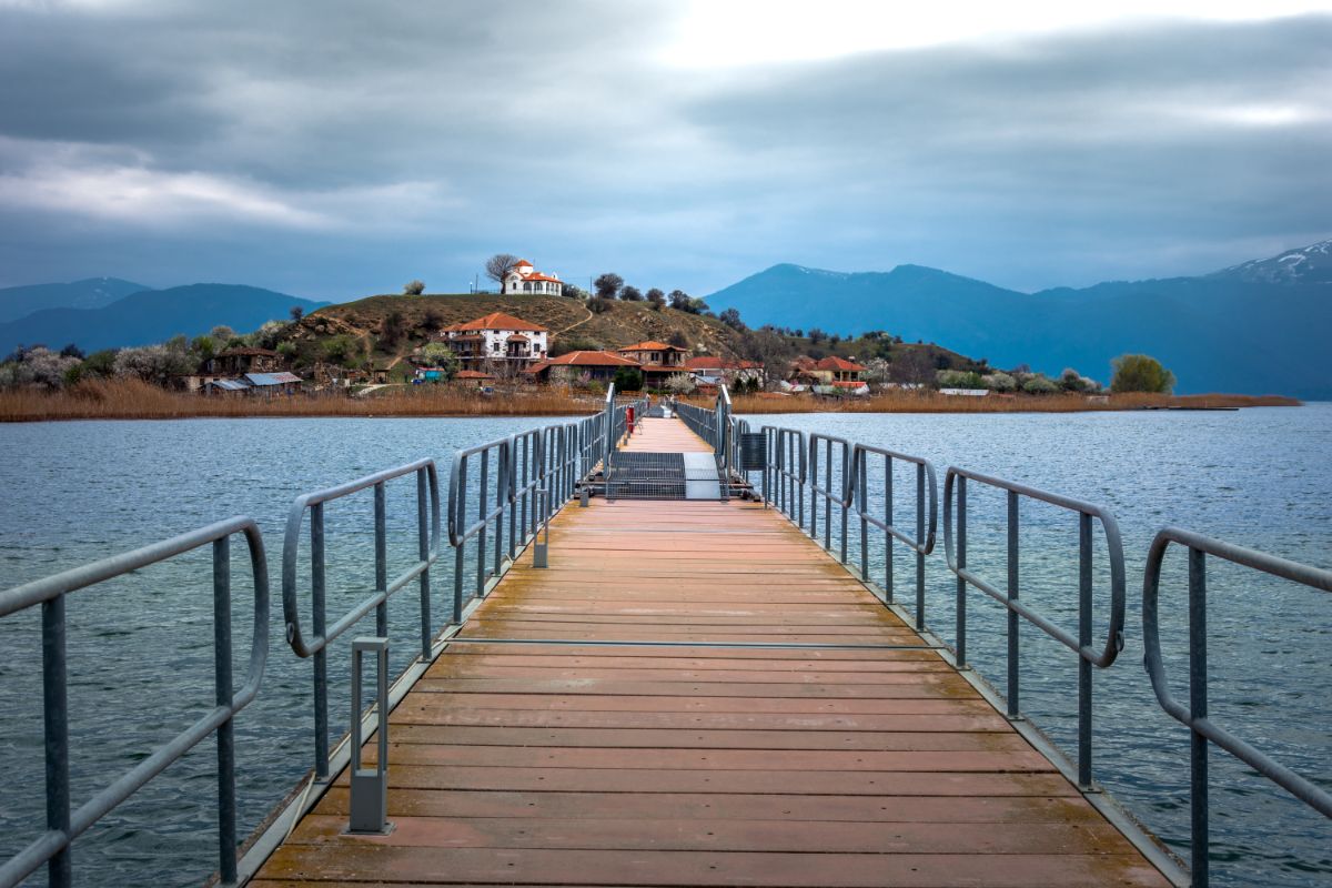 O Άγιος Αχίλλειος συνδέεται με την κοντινότερη όχθη της λίμνης μέσω μιας πλωτής πεζογέφυρας μήκους 650 μέτρων/Photo: Shutterstock